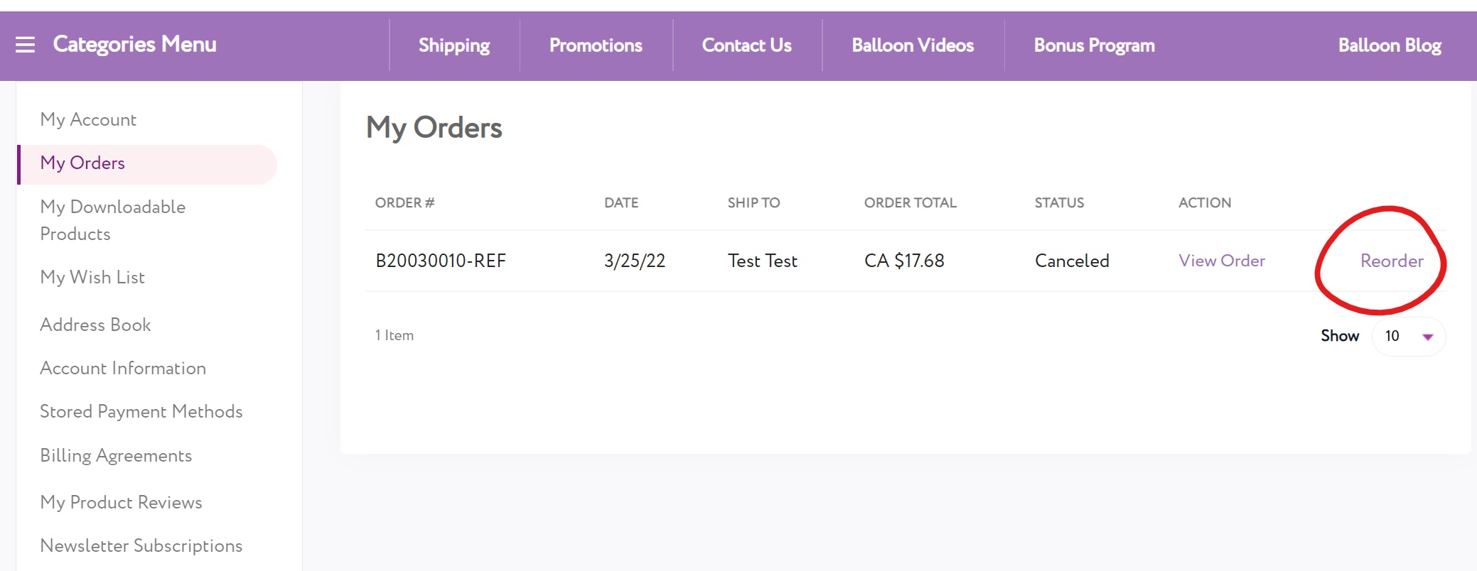 Now you simply go back to "My Orders" and click on "Reorder" on the far right of the order you just canceled. Don't worry if you need to adjust anything, you can do that when you visit your cart before you confirm your order.